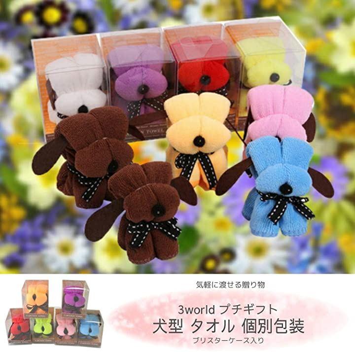 3world犬ドッグシェイプミニタオルOPP包装済みプチギフト粗品プレゼント個別包装