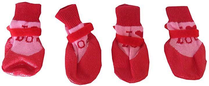 柔らかい生地で、傷から木材の床を保護し晴れた日に外の散策も使える犬用靴下、面ファスナー付き、しっかりしてソックスの剥離を防ぐ