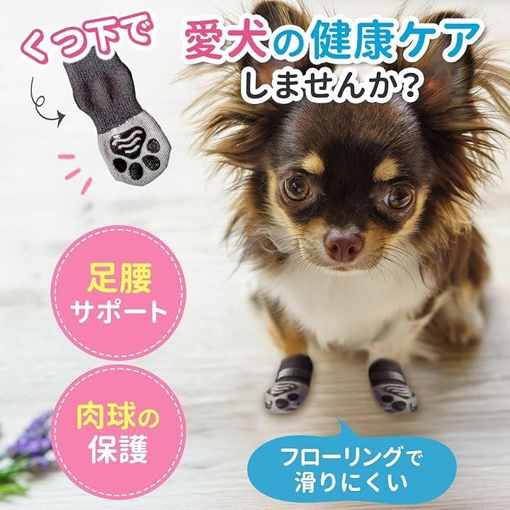 「滑り防止」フローリングでの生活は滑りやすく関節を痛める恐れがある為、滑り止めの付いたくつ下を履かせることで愛犬の健康を守ります。