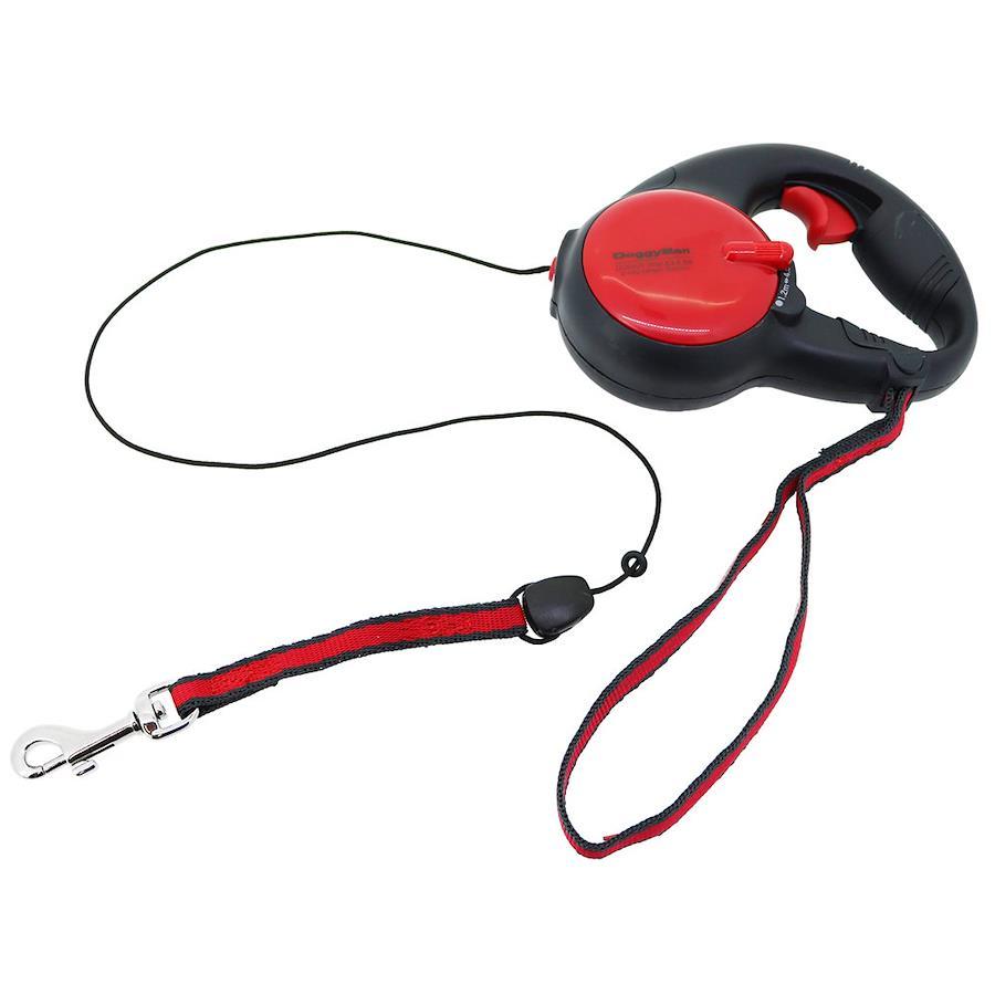 ・本体側面にある切り替えレバーでフリーの長さを1.2m、4.5mにセットできるリール式伸縮リード。・トリガーボタン一つでロック&フリーができる簡単操作。・体重8kg以下の超小型、小型犬用。・丸紐タイプ。落下防止ストラップつき。・1.2mで伸縮フリーになり、引きずったり絡まったりを防ぐことができる便利なリード。
