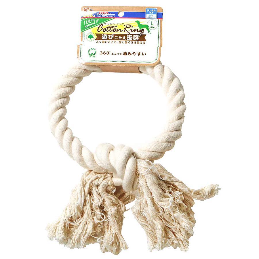 ・自然素材100%のコットン玩具にリングタイプが仲間入り! ・360°どこでも咥えやすい形状で、たくさん噛めます。・引っ張りっこやもっておいでにもぴったり。・大型犬用。