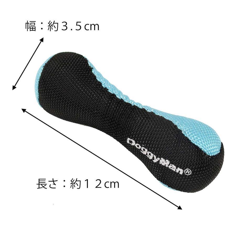 お口の小さいワンちゃんでも噛みやすく、くわえすい。丈夫な生地でパンクしないEVAフォームをダンベル型にして包みこんだ強いおもちゃです。オーナーさんとの引っ張り合いっこで遊んだり、転がったときに不規則な動きをするのでワンちゃんも大興奮で追いかけます。