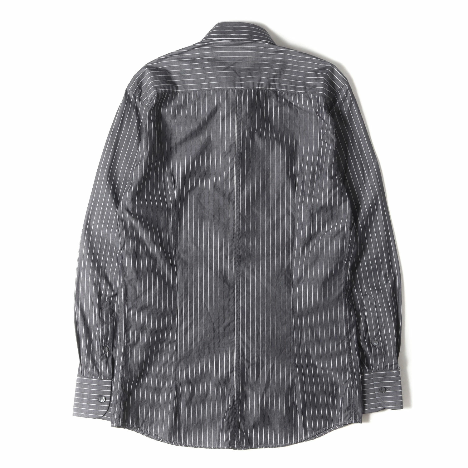 | 商品説明 | ・光沢感のあるストライプ生地 ・レギュラーカラー ・ややスリムなシルエット ・ロゴ刻印ボタン |
