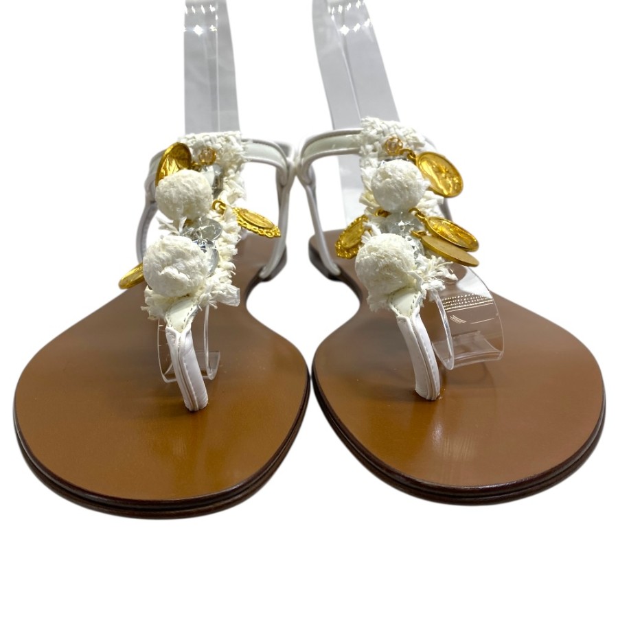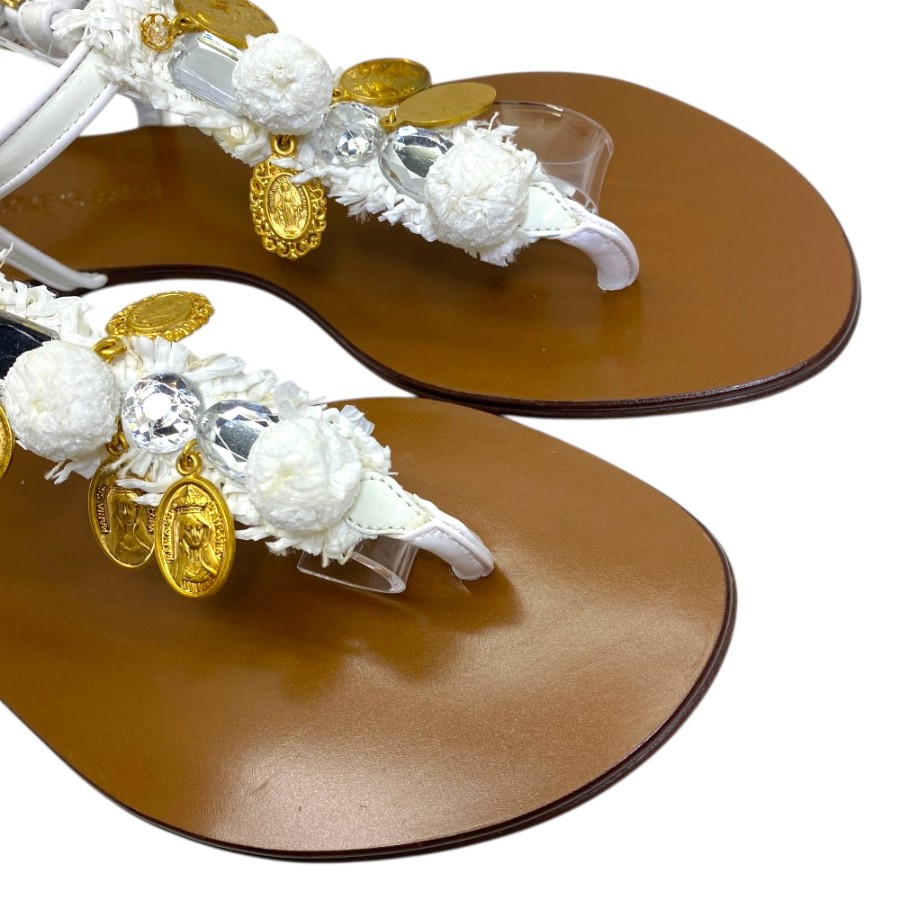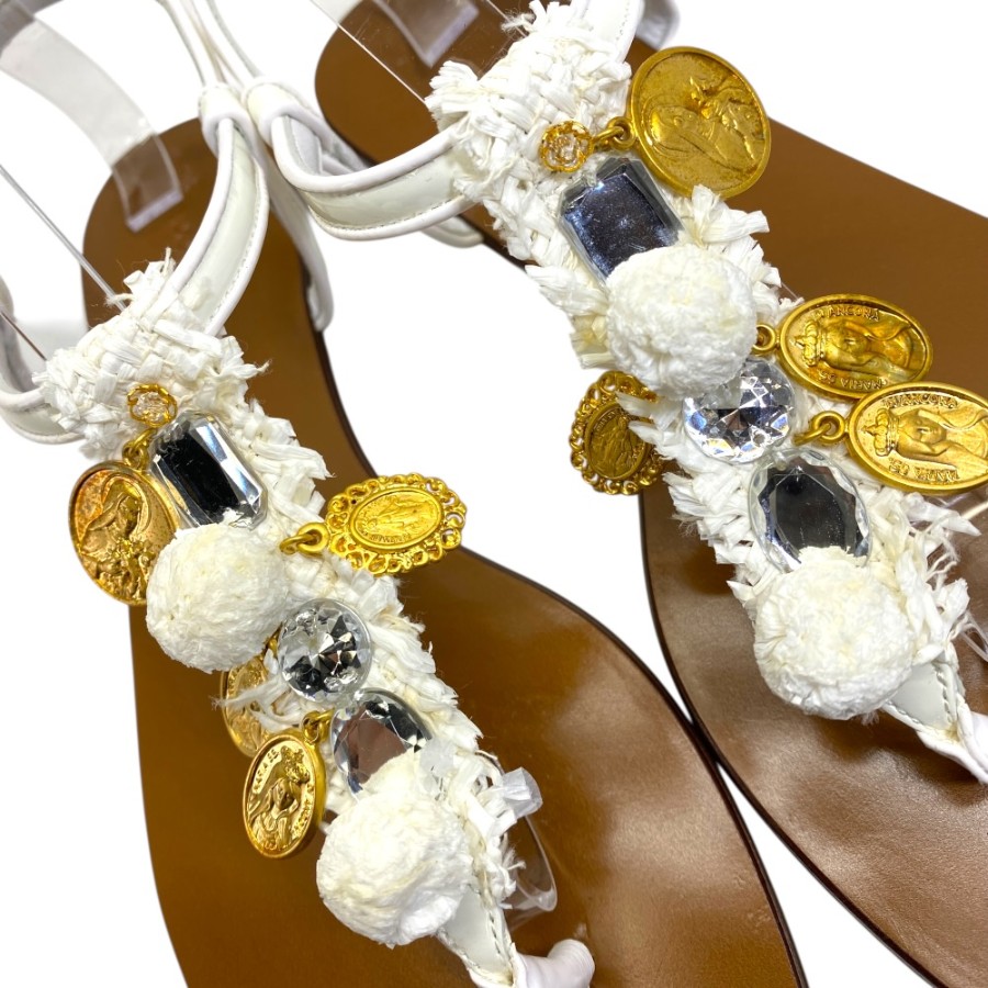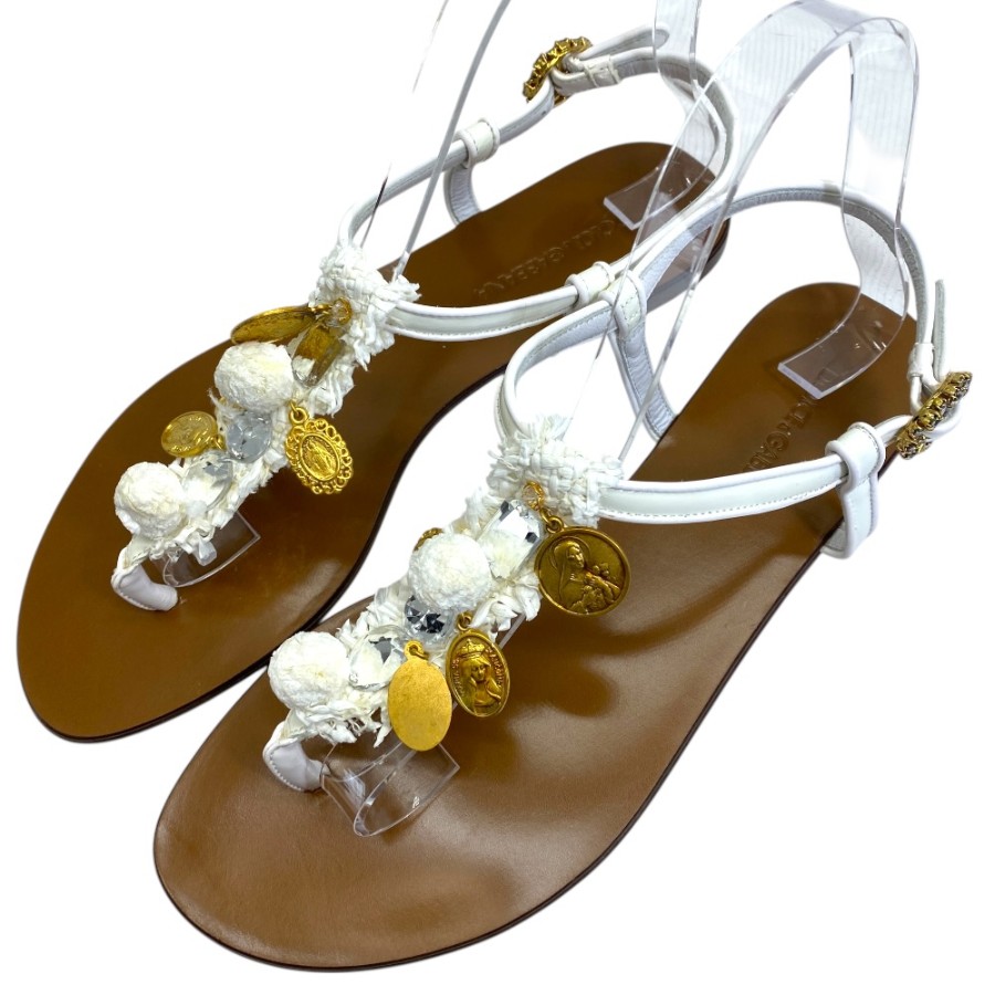 【ブランド】DOLCE&GABBANA ドルチェ&ガッバーナ【商品名】クリスタル マドンナ ラフィア サンダル【商品番号】-【カラー】ホワイト/ブラウン/クリスタル/ゴールド【サイズ】アウトソール:25.5cm アッパー幅:9cm 表記サイズ:38 1/2(約25.5cm)【素材】レザー/ビジュー/メタル【付属品】保存袋【ランク】SA(展示品レベル)【コメント】外側:薄スレ/薄キズ(小) 内側:薄スレ/薄キズ(小)*未使用展示品【管理番号】0406c1952o商品情報