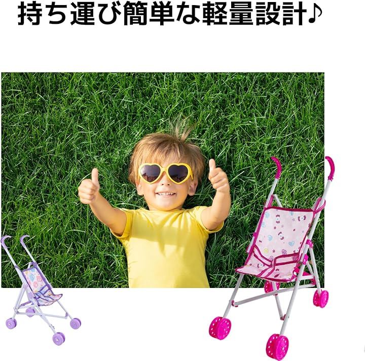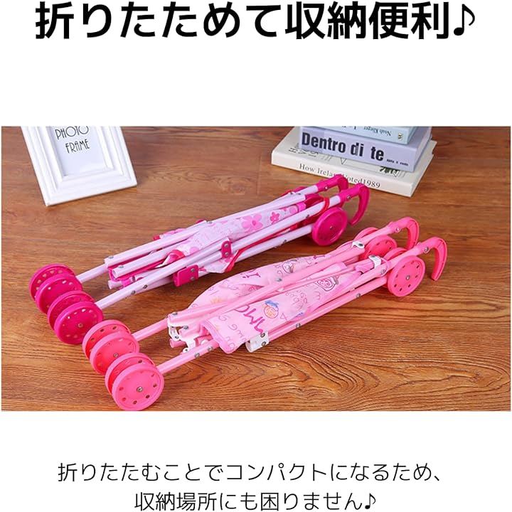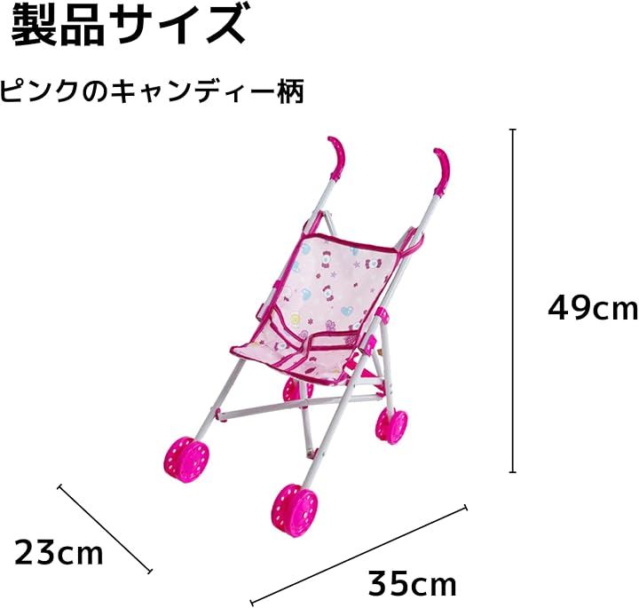 ピンクのキャンディー柄「軽量で子どもでも持ち運びやすい人形ベビーカー」