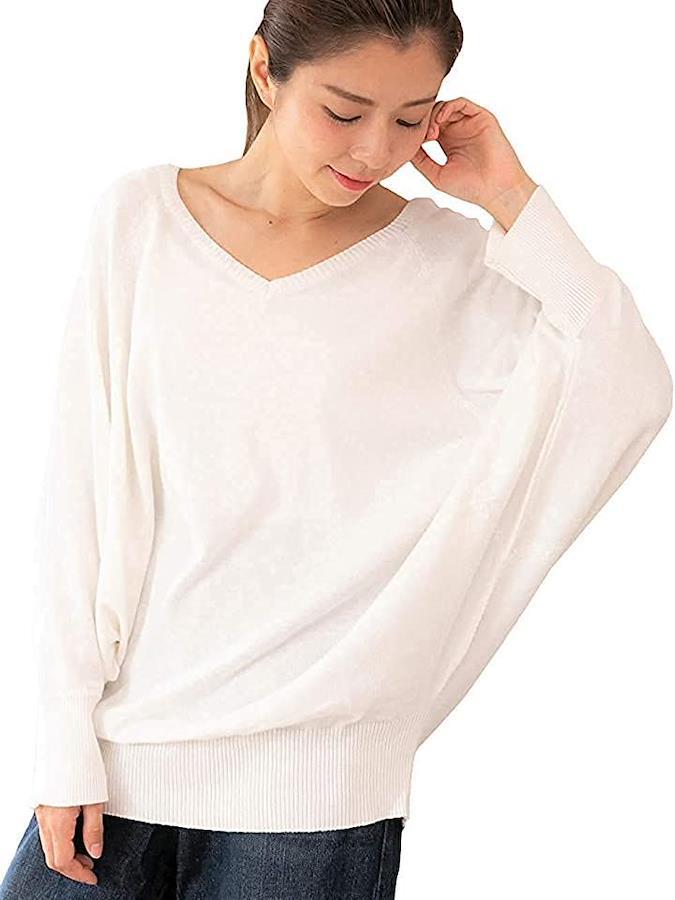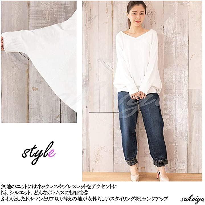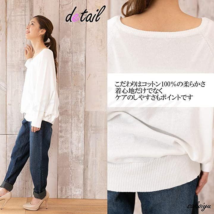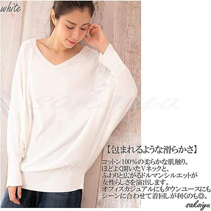 ・コットン100%の柔らかな肌触りで着心地*程よく開いたVネックと、ふわりと広がるドルマン・シルエットが、リラックス感がありながらもフェミニンな女性らしく、春ニットとしても活躍します。