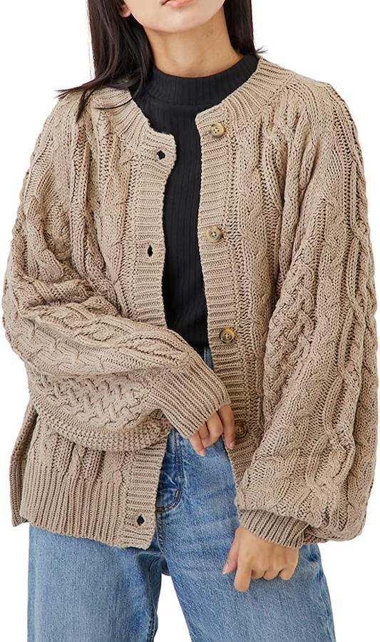 「モコモコ可愛い暖かニットカーディガン」きれいな編み模様が可愛いニットカーディガン。