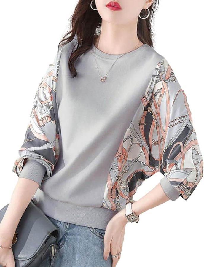 遊び心溢れる上品なプリントの切り替えが、一枚で絵になるプルオーバーです。