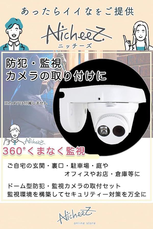 「防犯・監視カメラの取り付けに」ご自宅の玄関・裏口・駐車場・庭や、オフィスやお店・倉庫等にドーム型防犯・監視カメラを設置するための取付金具セットです。