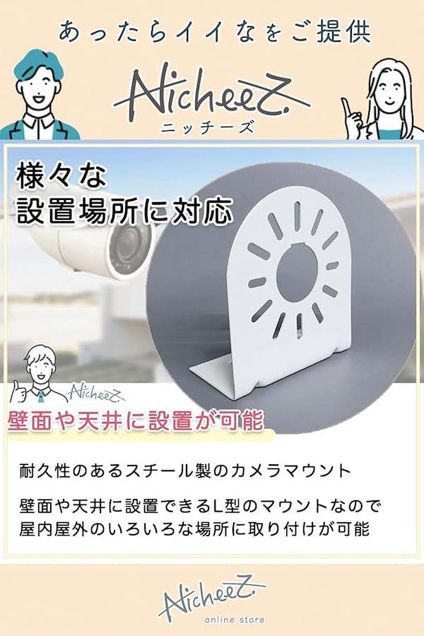 壁面や天井に設置できるL型のカメラマウントなので、CCTVカメラとの互換性もあり、屋内屋外のいろいろな場所に取り付けが可能です。
