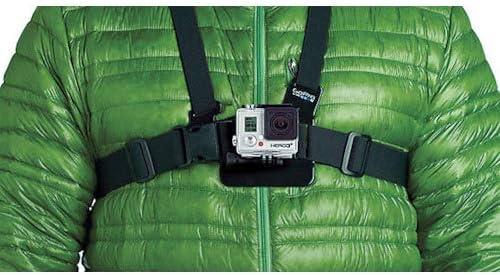 胸部にカメラを固定するハーネスキット。ハンズフリーでより安定した撮影が可能になります。*自転車など、上体が前傾する使用環境では、付属のJフックバックルと併用することでカメラを正面に向けることができます *カメラ本体は付属しません