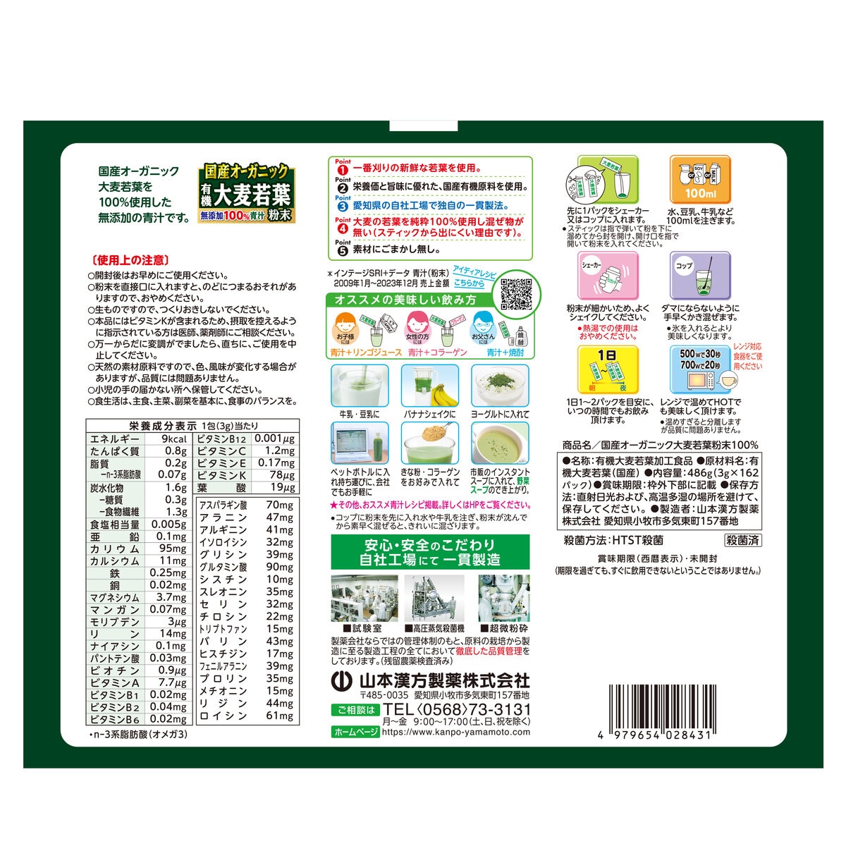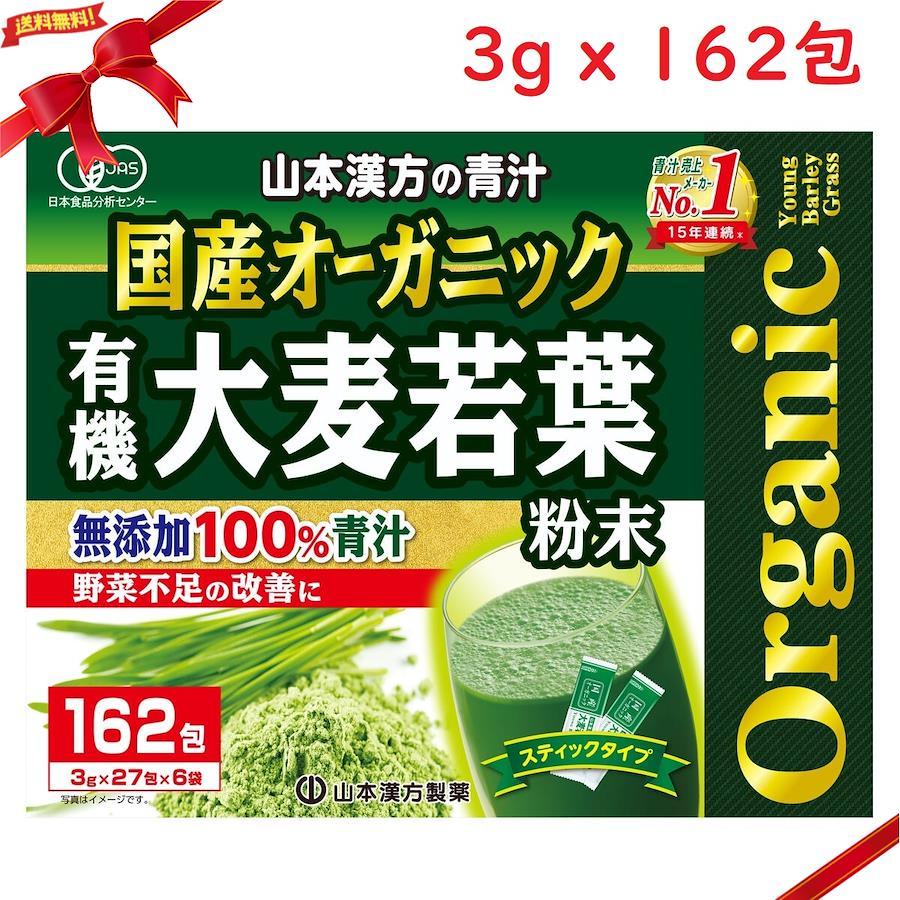 国産 無添加 100% オーガニック 青汁 3g x 162包入 <山本漢方製薬>100% Pure Organic Young Barley Green Powder 3g x 162 Count