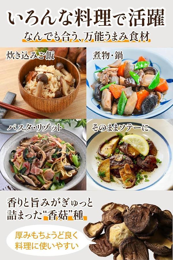 干し椎茸、乾燥しいたけ、干ししいたけとして販売されている商品の中でも、下処理不要で手間が省ける利便性は大きなメリットとなっており、忙しい方や飲食店などでの業務利用にもぴったりです。