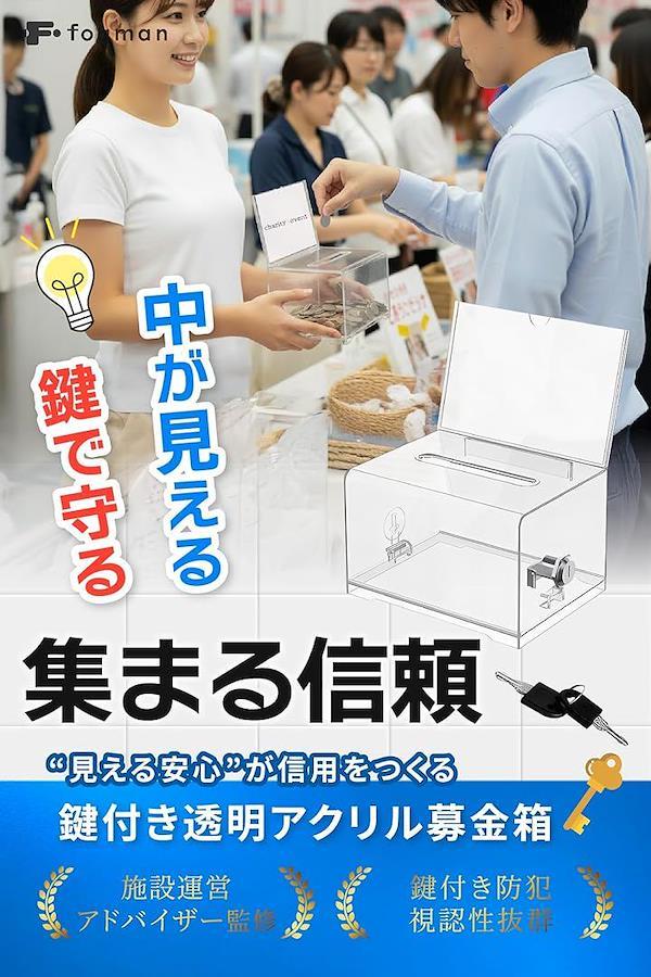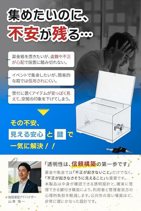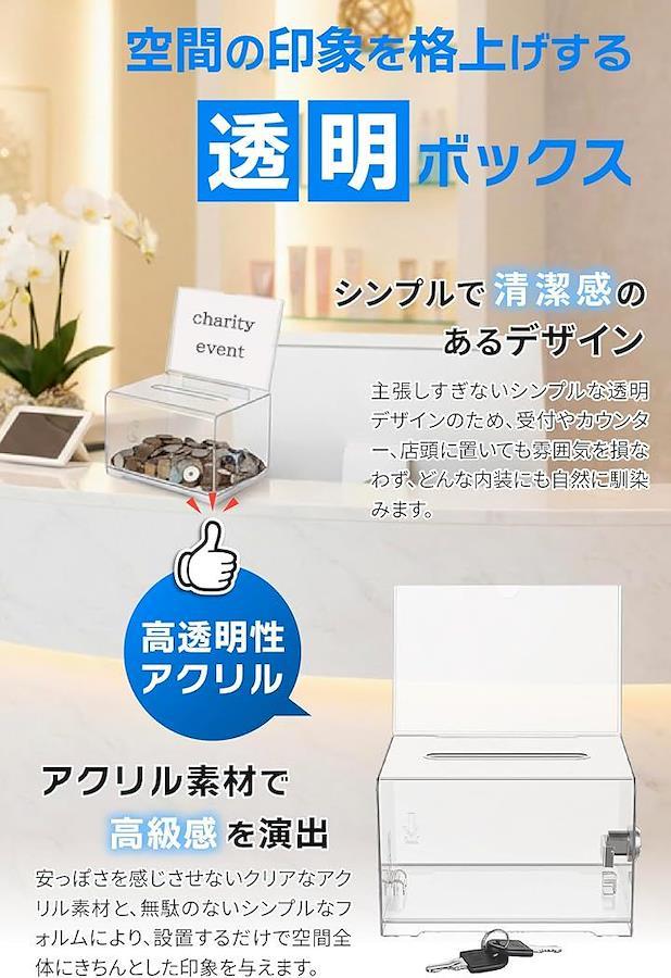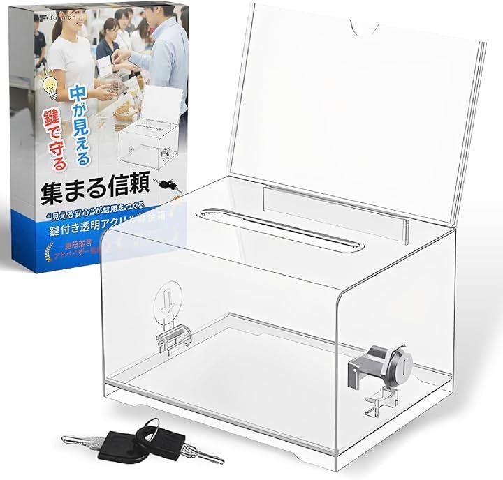 Donation Box, Acrylic with Lock, Clear, Ballot Box, Suggestion Box, Lottery Box, Compact, Tabletop, Supervised by Facility Management Advisor