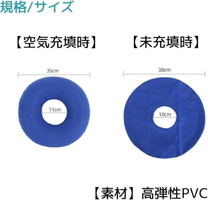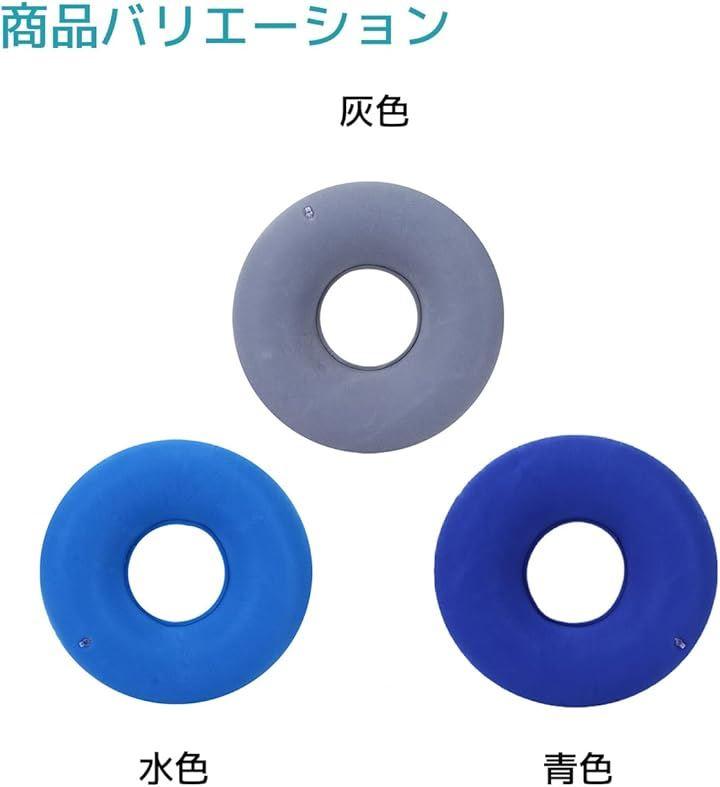 「バリエーション」青色 / 水色 / 灰色「サイズ」直径35cmx内径11cm(空気充填時)、直径38cmx内径10cm(未充填時) 「素材」高弾性PVC