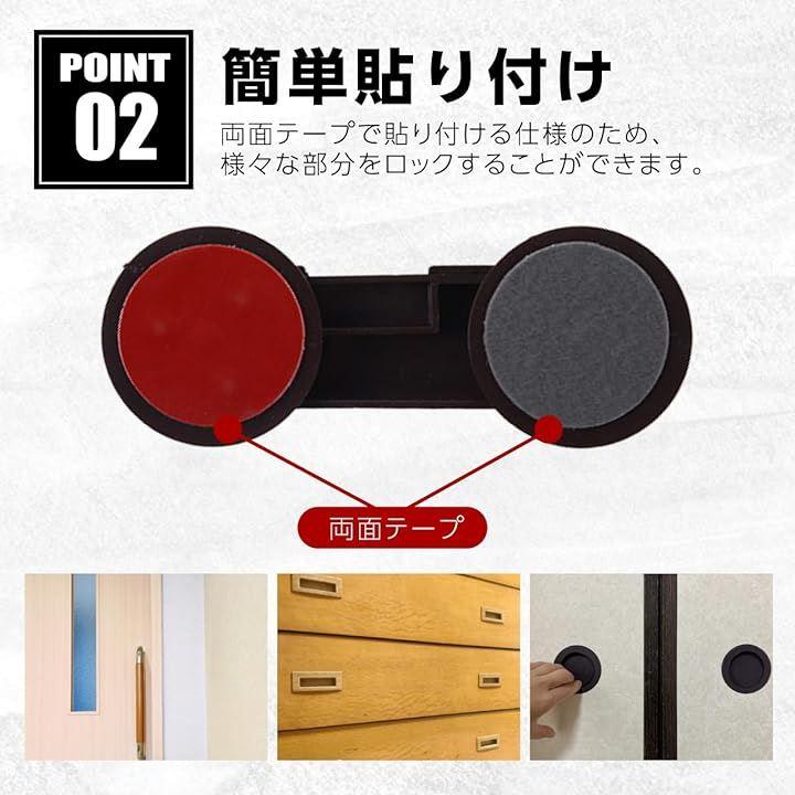 引き戸や・開き戸・クローゼット・食器棚・キャビネット・タンスなど両面テープで貼り付ける仕様のため、様々な部分をロックすることができます