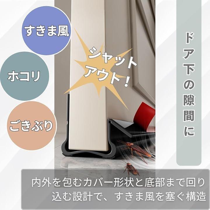 「すきま対策」内外を包むカバー形状と底部まで回り込む設計で、すきま風やほこり、虫の侵入を抑える構造。