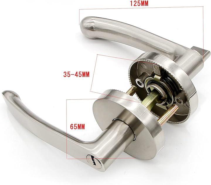 [ET001-SS シルバー] 45°ドアを開けレバーハンドル錠 アルミニウム合金の主体 適用扉厚:30-50mm ラッチは60mmあるいは70mmに調整可能 フェイスプレート直径:65mm; ハンドルサイズ: 120 mm