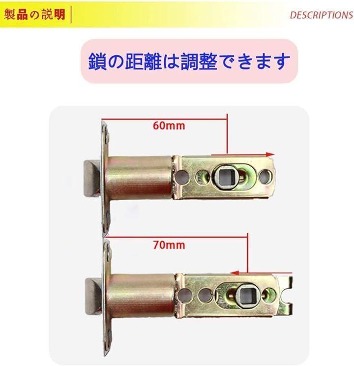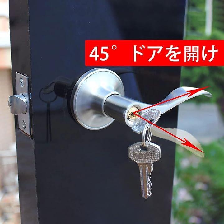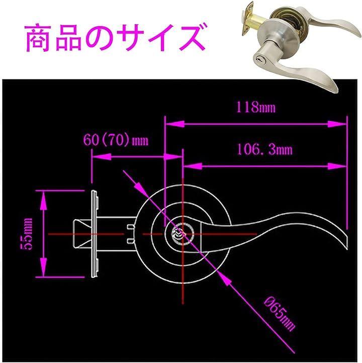 ドアノブ レバー 鍵付き,45°ドアを開けレバーハンドル錠 , 30-50mmドアに適用,デッドボルト60mm~70mm調整可能