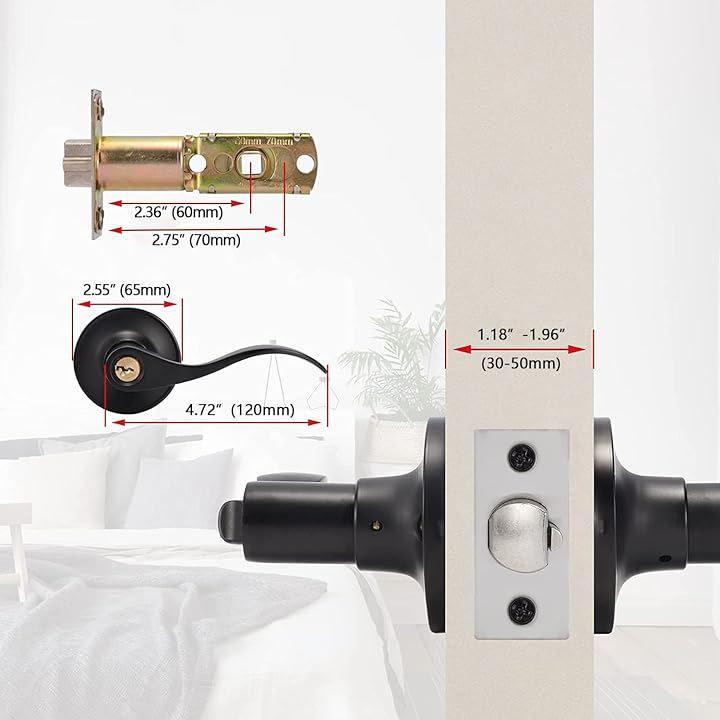 ドアノブ レバー 鍵付き,45°ドアを開けレバーハンドル錠 , 30-50mmドアに適用,デッドボルト60mm~70mm調整可能