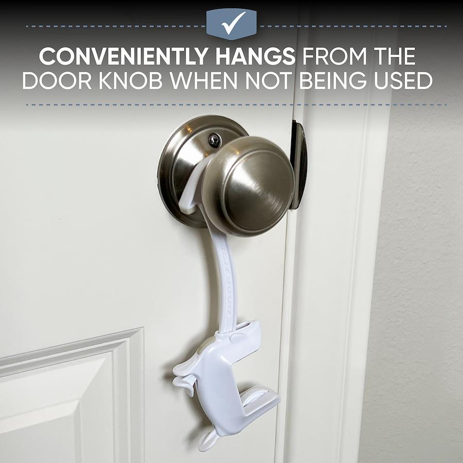 ポイント①「DOOR MONKEY ドアモンキー」は子供、屋内のペットらの飛出し、侵入、幽閉を防止するために設計され、工具を必要としない、開閉式ドアのお好みの高さにセット可能なセーフティードアロックです。
