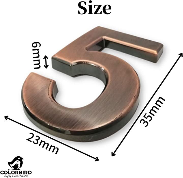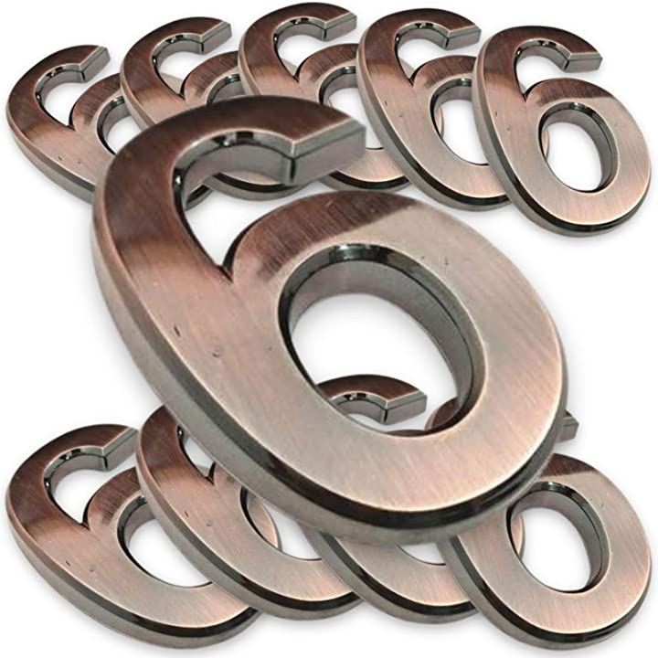 ・「材質」ABS樹脂、裏面シール 「サイズ」35mm x23mm x6mm 「数量」6の数字x10個セット 「色」艶ブロンズ