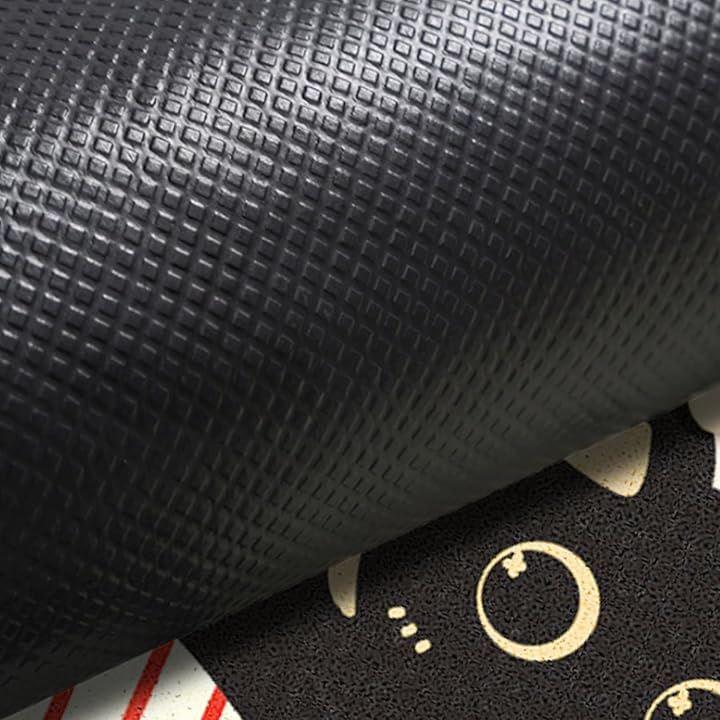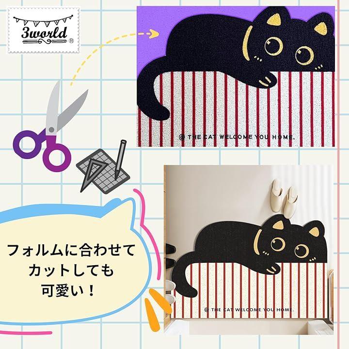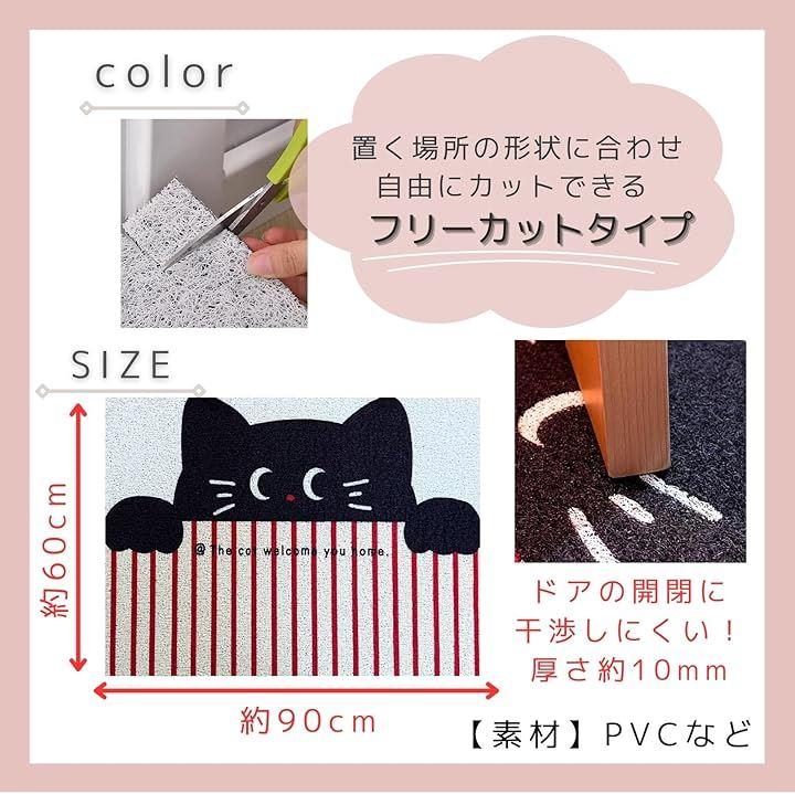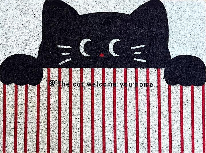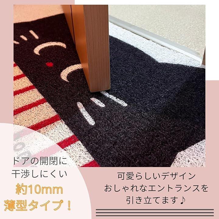 可愛い黒猫がお出迎え。泥落とし効果の高いループ形状のマットで清潔な玄関のお手伝い。