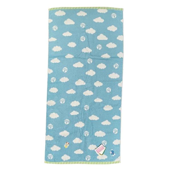 タオル一面が空のデザインとなっており、タケコプターで飛んでいるドラえもんのアップリケが可愛いフェイスタオルです。ふわふわした無撚糸で触りごごちの良いボリュームのあるタオルに仕上がっています。サイズ違いをセットにしてお祝いごとの贈り物にもオススメです。