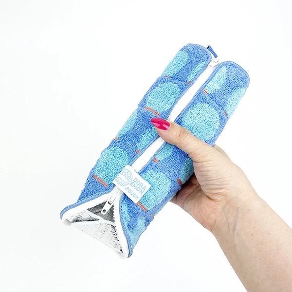 どっとポーチとは・・・タオルのふりしてこそっとポーチ☆彡その名のとおり、隠したいものをさりげなく隠せたり、小物もなくさず収納可能◎ペットボトルや濡れた傘などもカバーしてくれます♪保冷剤を入れて、アイピローにもおすすめです☆彡汚れたらさっと手洗いできるから、いつも清潔にお使いいただけます♪