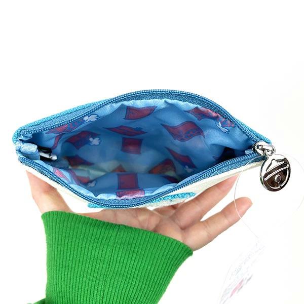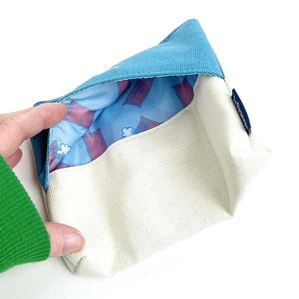 ドラえもんの部分がサガラ織りでモコモコのポーチです。ティッシュケース付きでコンパクトにまとめたい時に◎