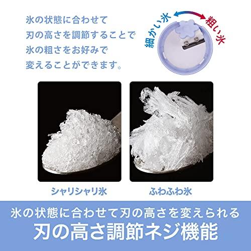 通常1-5営業日で発送:大人のふわふわかき氷器。コードレスだから、場所を選ばず、かき氷ができます。氷の高さ調節機能:氷の高さに合わせて刃の高さを自分で調節することで氷のうすさを変えることができます。電源:DC6V単3形アルカリ乾電池4本使用(別売り)。安全装置:氷ケース感知スイッチ。