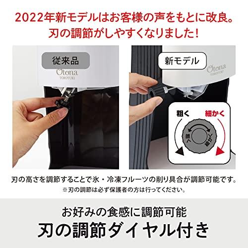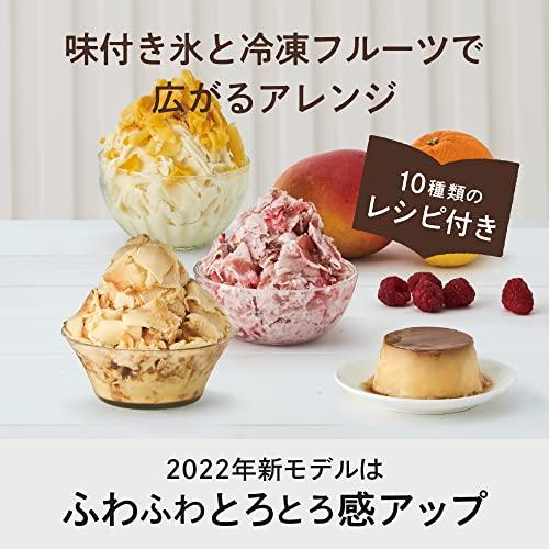 通常1-5営業日で発送:ジュースや冷凍フルーツでふわふわとろとろスイーツが楽しめます。発見!プリンかき氷がおいしい。プリンを製氷カップに入れて凍らせるだけ。市販の冷凍フルーツでかき氷。冷凍フルーツを削るだけで簡単においしくいただけます。2022年モデルは歯の高さが調節しやすくなりました。氷、冷凍フルーツ、プリン氷のうすさを変えることができます。製氷カップMサイズ2個付き。レシピ付き。ワイドトレイで器が置きやすくなりました。定格消費電力:25W、コード長さ:(約)1.3m。