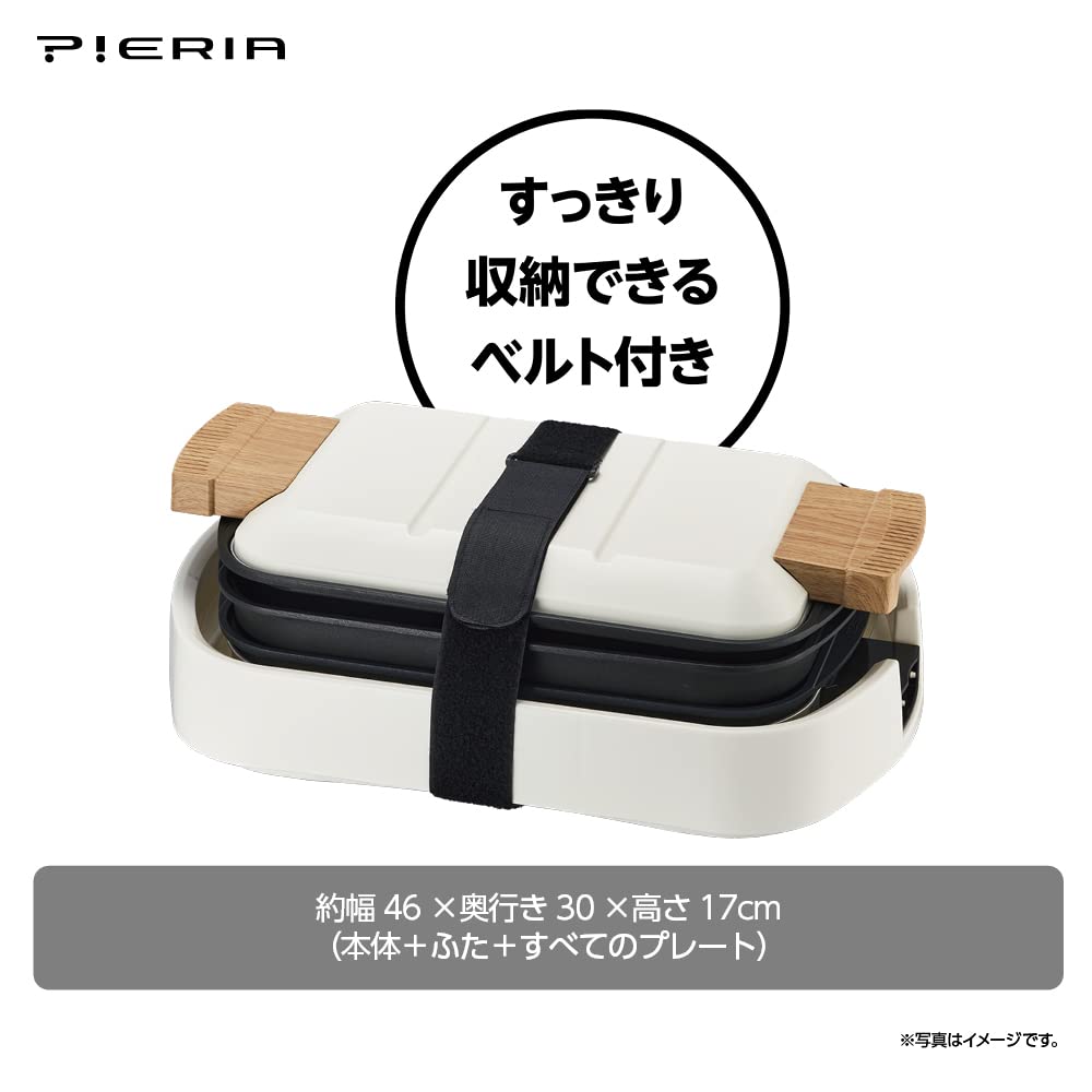 Doshisha Hot Plate with 3 Plates, Flat Plate, Takoyaki Plate, Wave Plate, Stepless Temperature Control, Storage Belt Included, Natural Wood