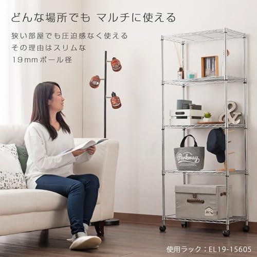 ●棚板の取付け位置が2.5cmピッチで変えられる ●棚板1枚当り耐荷重は約80kg ●移動に便利なキャスター付(2個ストッパー付) 型番:EL19-15605 サイズ:59.5cmx奥行:34.5cmx高さ:154cm 棚耐荷重:80kg 3重構造で水にも強く、優れた耐久性・持続性を持つ 組立簡単スピード設置