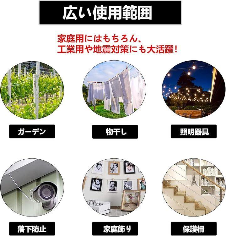 「ステンレスワイヤー特徴」ステンレスロープは耐食性、耐錆性、耐熱性、耐摩擦性に優れ、その上美しい光沢を持っているため、産業用からレジャー関連まで広範囲の分野に使用されています。