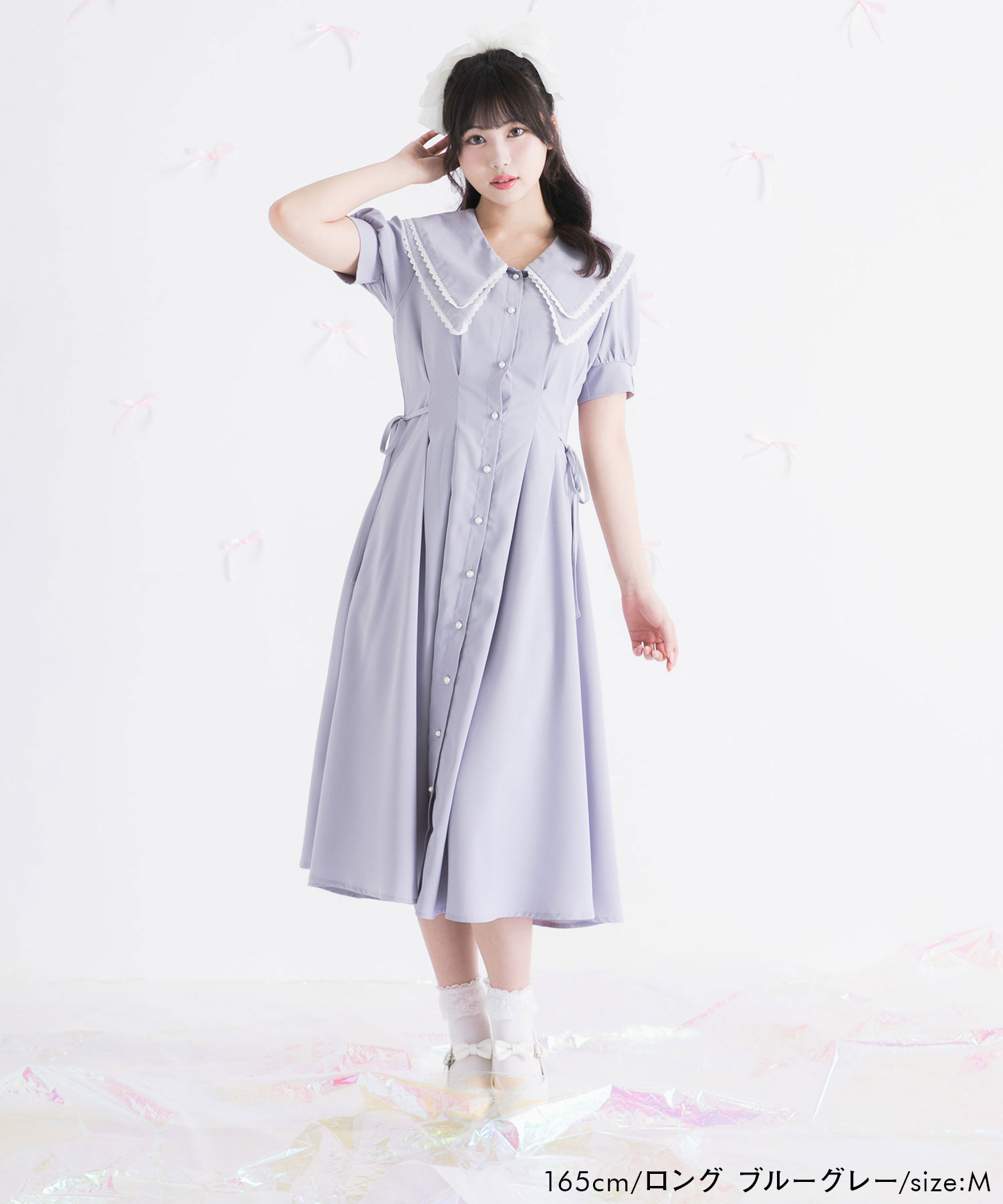 ※ドット柄の生地は静電気が起きやすいため、静電気防止スプレーの使用やペチコートのご着用をおすすめします。