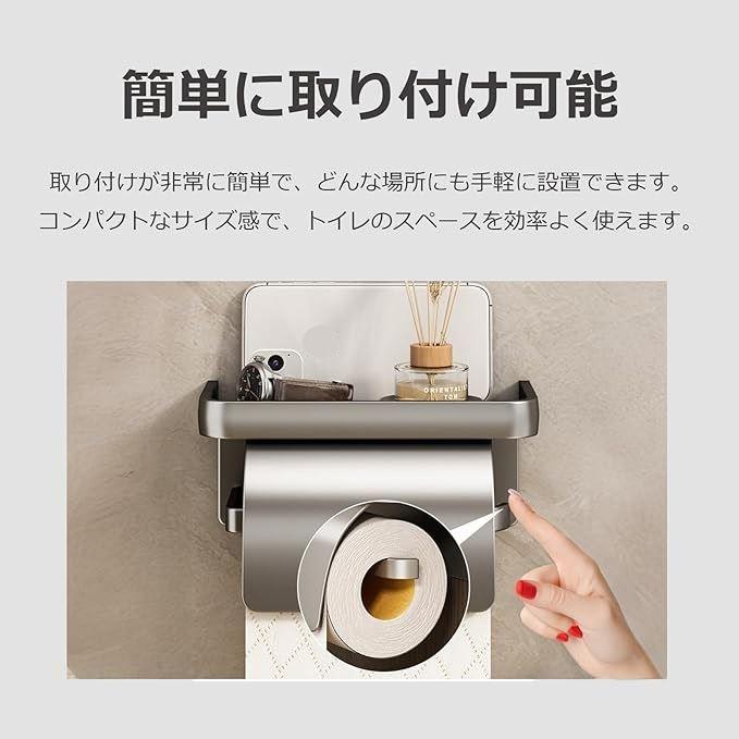 「簡単に取り付け可能」 壁掛け式のトイレットペーパーホルダーは、取り付けが非常に簡単で、どんな場所にも手軽に設置できます。