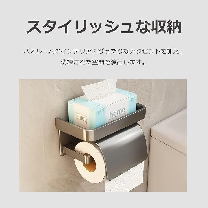 「スタイリッシュな収納」 トイレットペーパーホルダーは、シンプルでおしゃれなデザインが特徴です。
