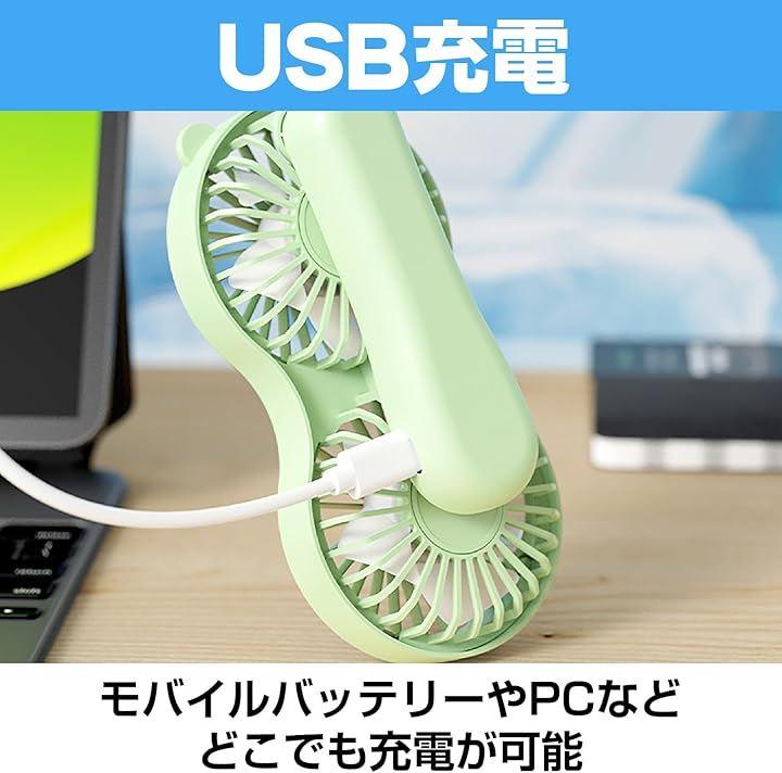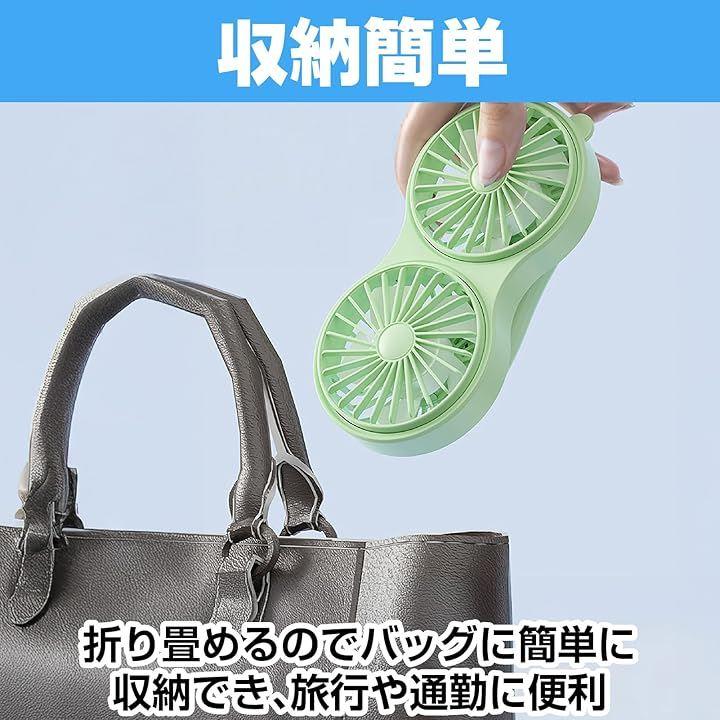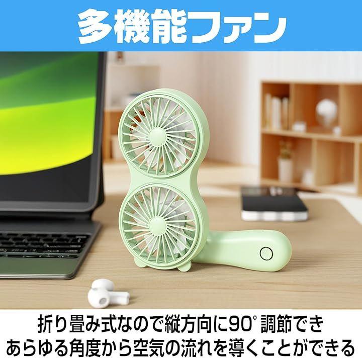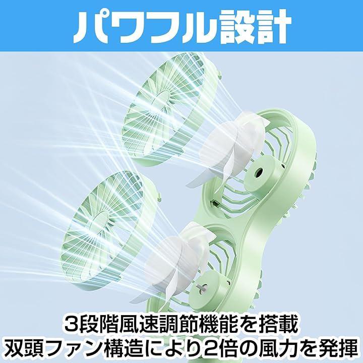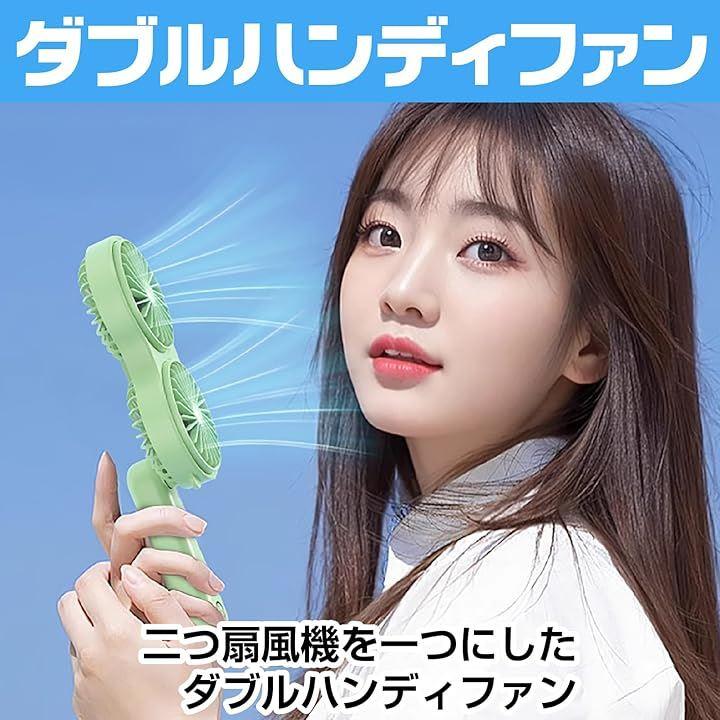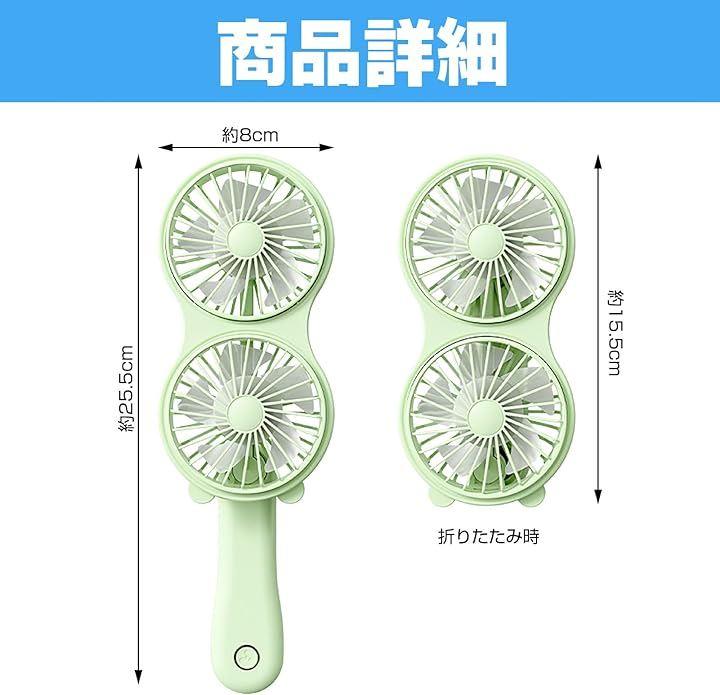 「強力ダブルファン設計で風力を実現」 2つのファンを搭載したダブル設計により、通常の携帯扇風機の2倍の風量を実現。