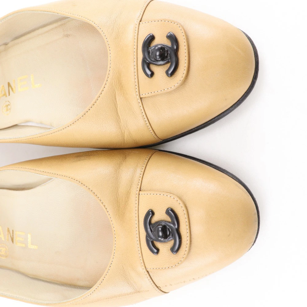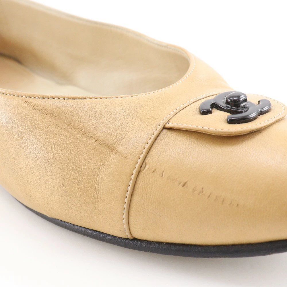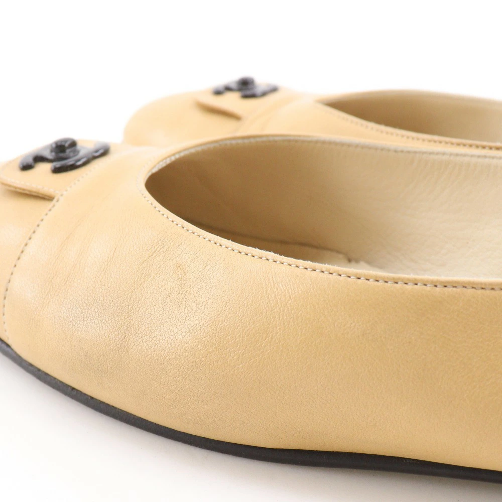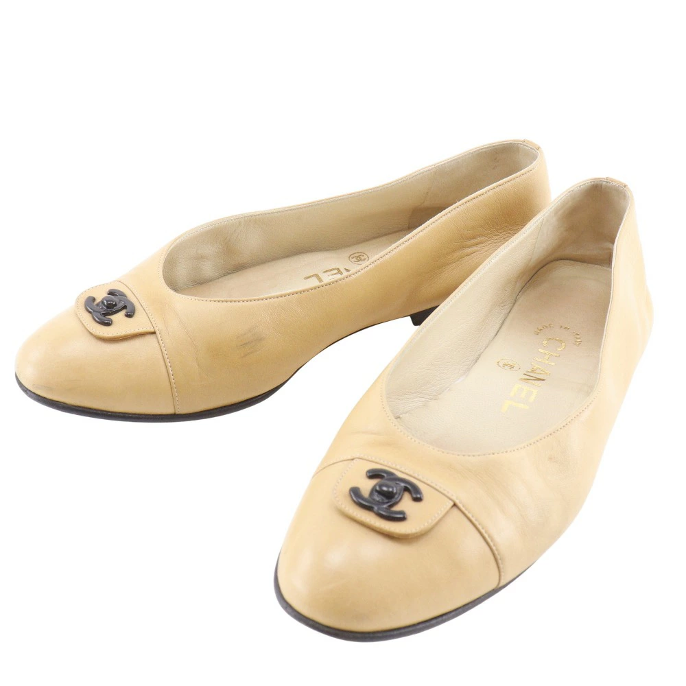 [Double Points & Discount Coupon Available Starting at 8 PM on the 4th] CHANEL COCO Mark Pumps, Ballet Flats, Beige, Lambskin, Women's, Pre-owned, B-Rank