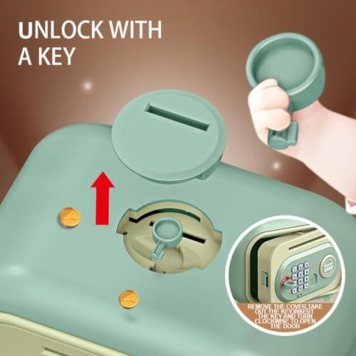 【安全】ABS高品質原料で作られ、安全と健康を確保し、滑らかでバリがなく、お子様のデリケートな手を保護します。 【パスワード貯金箱】: 4つの電子パスワード保護。パスワードが間違って入力された場合はプロンプトが表示されます。4桁の正しいパスワードを入力した場合にのみ開き、ドアを開くことができます。 (デフォルト:0000、好きなようにパスワードを変更できます)。 【子供のための最高の贈り物】すべての年齢の男の子と女の子のための最高の贈り物、それは子供たちが貯蓄の感覚と良い習慣を形成することを奨励します。また、この子供用貯金箱は、お金を貯めている間に積み立てをはっきりと観察することで、子供たちが貯蓄の習慣と自己管理能力を身につけるのを助けることができます。 この貯金箱があれば、子どもたちは自分でお小遣いを貯めて、貯める楽しさを味わうことができます。 【大容量】貯金箱は十分な容量を備えており、硬貨や紙幣、小さな貴重品などを安全に保管できます。 【自動ロールマネー】: 紙幣を巻物に置くと、自動的に機械に巻くことができます。 (ただし、紙が古すぎたり柔らかすぎたりすると機能しないことに注意してください)。上部のコインスロットでコインを投げることができます。