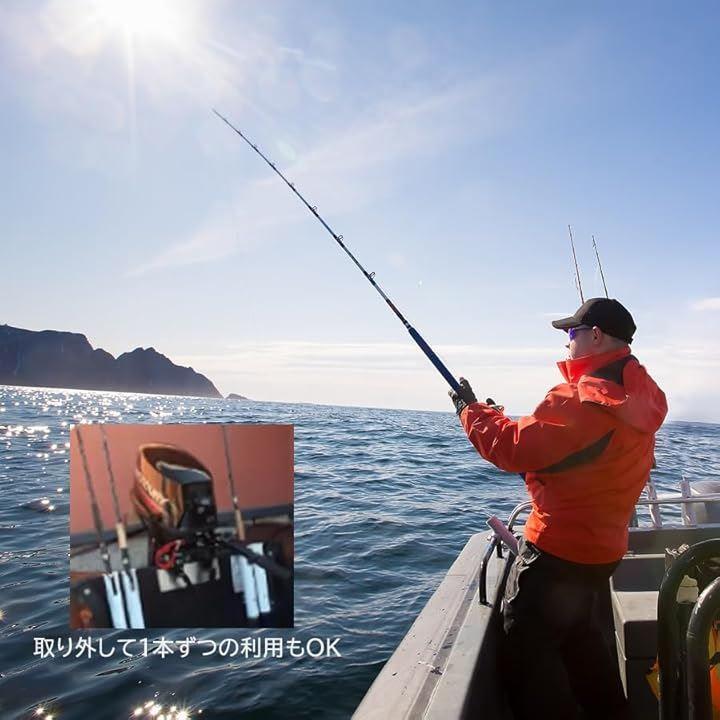 「スムーズな出し入れ」船、漁船、ボート、カヤック、ヨット、カヌーフィッシング、クーラーボックス、キャリーカートなどに取り付け可能な2連ロッドホルダー。