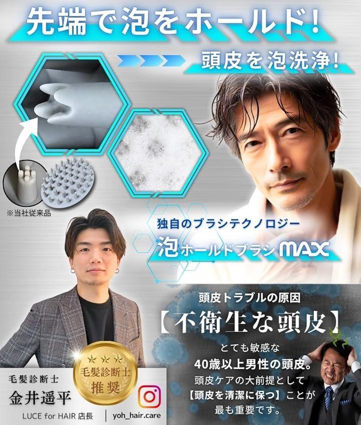 「泡ホールドブラシMAX」パワーアップした特殊形状の頭皮ブラシ。毛穴の奥まで泡洗浄。