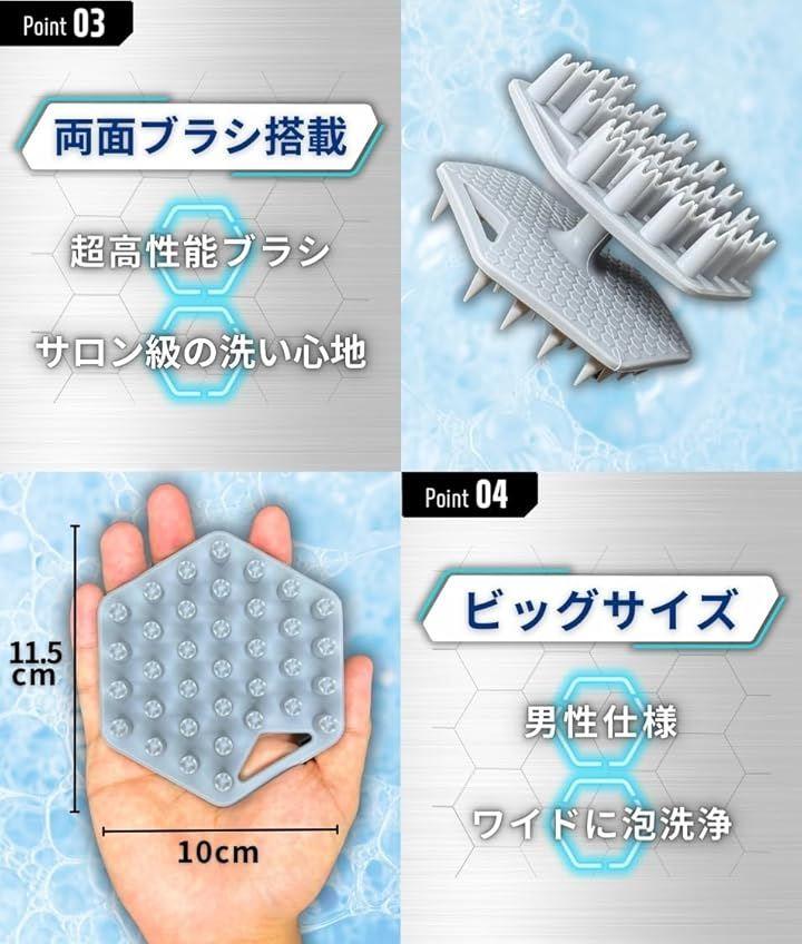 「両面ブラシ搭載」ブラシの使い分けでサロン級の洗い心地を実現。