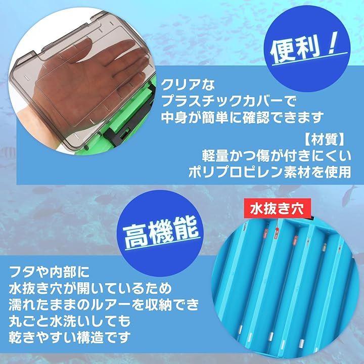 x便利で衛生的な構造:ケースには複数の水抜き穴が設けられており、濡れたままのルアーや釣り具をそのまま収納可能です。