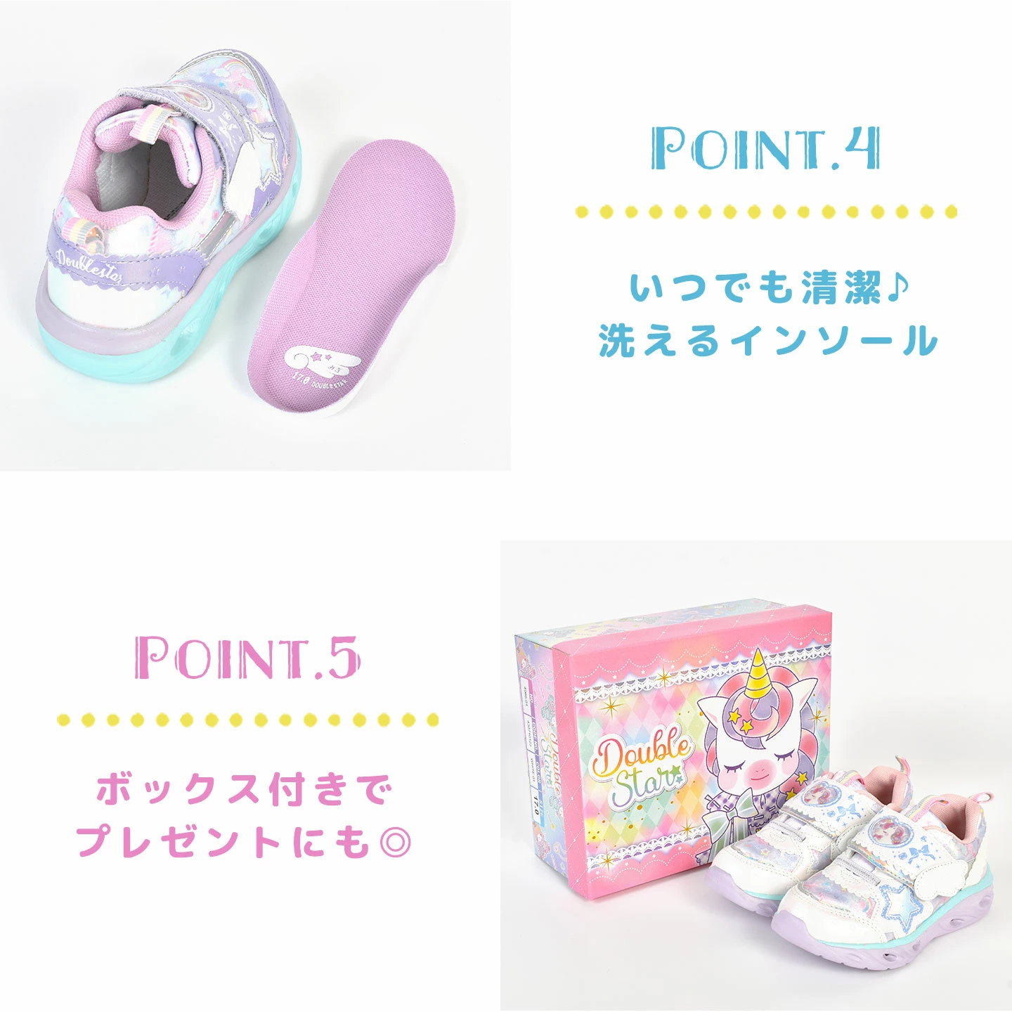 ■関連キーワード光る靴 女の子 スニーカー Double Star ダブルスター キッズ 子ども シューズ 3歳 4歳 5歳 6歳 16 17 18 cm 軽量 可愛い おしゃれ キラキラ ピカピカ 光る 柔らかい 軽い 子供靴 運動靴 ユニコーン ホワイト パープル オーロラ レインボー 幼稚園 保育園 孫 娘 プレゼント 女児 人気 おんなのこ こども ジュニア 女子 小学校 低学年 通園 通学 入学 入園 卒園 一年生 誕生日 クリスマス お祝い フラッシュシューズ 虹色 ハート ラメ ラベンダー 紫 キッズシューズ リボン レース やわらかい 面ファスナー ベルト 履きやすい 脱ぎやすい インソール 中敷き取り外しOK 取り外しできる 中敷き 外れる 洗える 遊び あそび お出かけ おでかけ ひかる LED 電池 園児 夜道 安心 おすすめ コマリヨー 厚底 7歳 8歳 小学 1年 2年 二年 生 小学生 保育所 学校 入園準備 入学準備 子供 ガールズ girl バースデー プチ ミニ ギフト お返し 粗品 景品 送別会 イベント クリスマスプレゼント お洒落 カワイイ