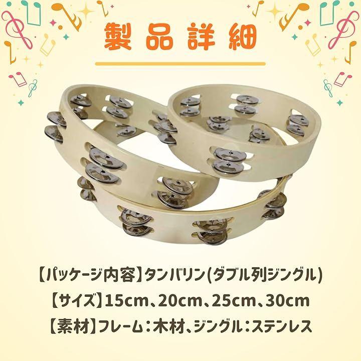 「パッケージ内容」タンバリン(ダブル列ジングル)「サイズ」15cm,20cm,25cm,30cm「素材」フレーム:木材、ジングル:ステンレス