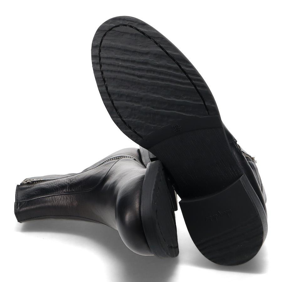 | シンプルな筒ものブーツにジッパーでアクセントを 【素材】 革加工職人の手で一枚一枚加工を施したオリジナルブレンドレザーを採用。 厚口の牛革ながらもやわらかくしなやかなレザーです。 ※本革を使用している為、多少のムラや小傷などがございます。 【デザイン】 つま先は適度なボリュームを持たせたラウンド木型。 トップヘビーになりがちな秋冬のコーデでも、バランスが取りやすいシルエット。 靴の両側面にジッパーを装着している為、細身で美しいシャフトを維持しながら、着脱も簡略化しました。 【サイズ】 革靴で25.5cm、ライニングやインソールにクッションが入っているスポーツ系スニーカーで26.5cm〜27.0cmを使用するスタッフで<25.5cm>がちょうどよかったです。 ※サイズ感は、個人差がございますので参考程度にお考え下さい。 ■ブランド:whoop'-de-doo' costume no age ■カラー:ブラック、ブラウン ■アッパー素材:牛革 ■裏地:豚革 ■アウトソール:合成ラバー ■シャフト:約14.5cm ■ソール:約0.8cm ■ヒール:約3.7cm ■重さ(片足):約600g ■製法:マッケイ ■生産国:日本 *多少の誤差が生じる場合がございますので予めご了承下さい。 whoop de doo co.,ltd whoop'-de-doo' フープディドゥ |