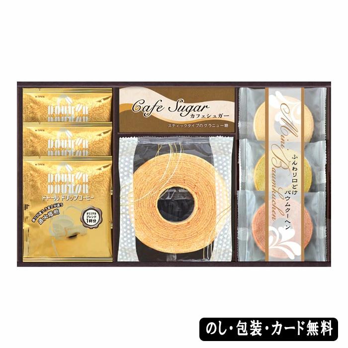 バウムクーヘン、ドトールまろやかカフェ・オ・レ13g、ドトールほろにがカフェ・オ・レ7g×各3、ドトールドリップコーヒー(アロマブレンド・深煎りブレンド)各7g×4