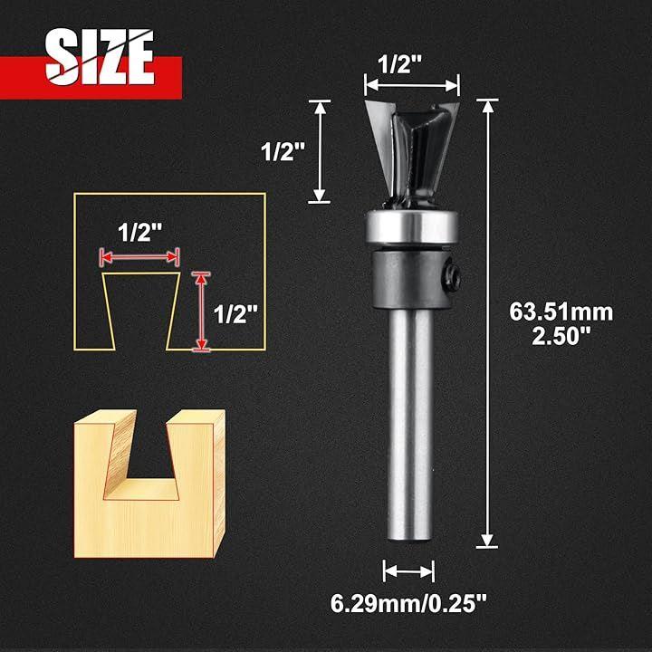 「サイズ」ブラックルータービット-切削直径:1/2;切削深さ:1/2;イエロールータービット-切削直径:5/8;切削深さ:9/16